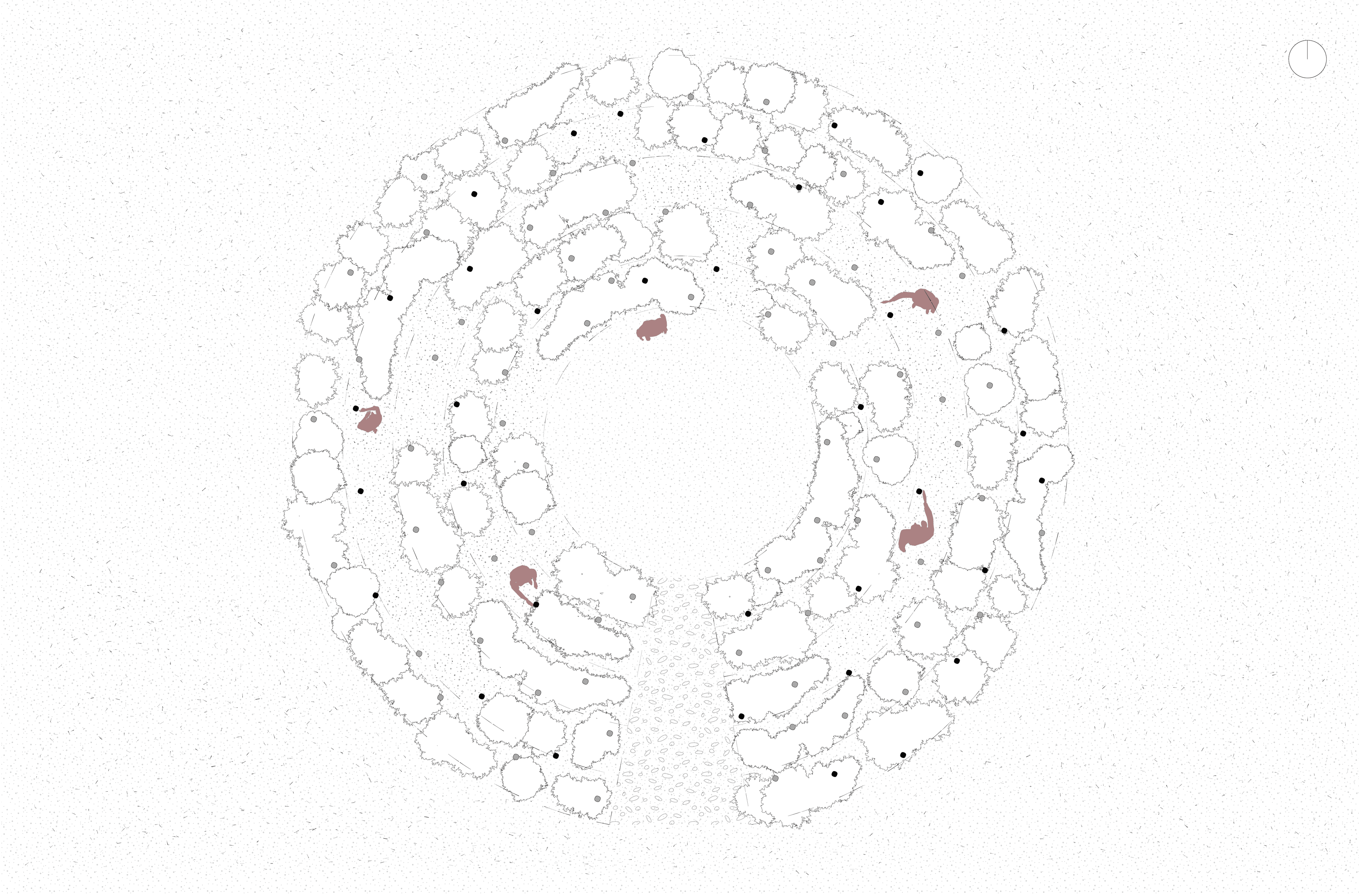 This intervention can be proposed for parks across Toronto, unifying its green spaces under a single common design language. However, further individual site studies must be conducted to ensure the appropriateness of such an intervention across various parks and their unique cultural environments. Various modules can feature circular labyrinthine paths, larger sunken spaces, or smaller single-person areas.